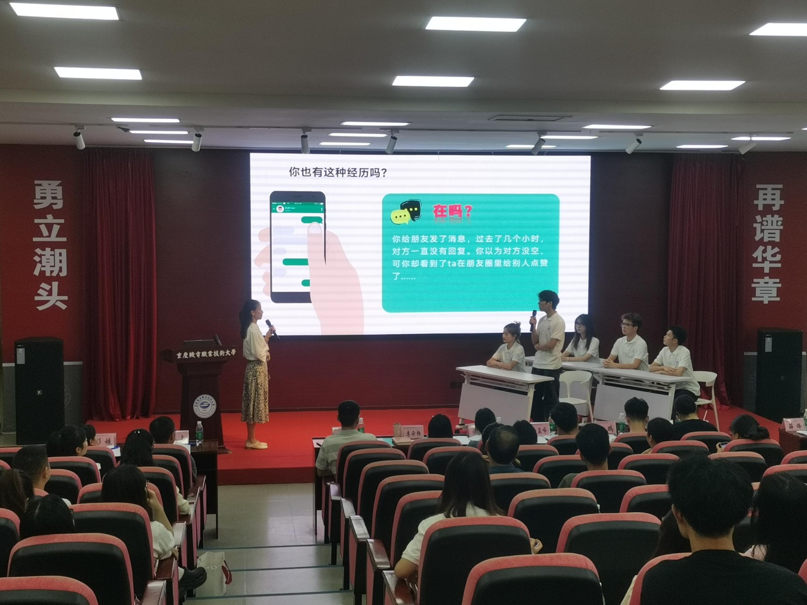 大赛设有教案评比和现场教学展示两个环节,6名辅导员同台竞技。参赛辅导员围绕大学生心理健康、生涯规划、爱国主义等育人主题,精心设计班会内容,充分运用PPT、视频、现场互动等多种教学手段,从多个角度、以多样形式,呈现出一堂堂主题鲜明、寓意深刻、内涵丰富的主题班会,为师生们带来了一场精彩的育人盛宴。