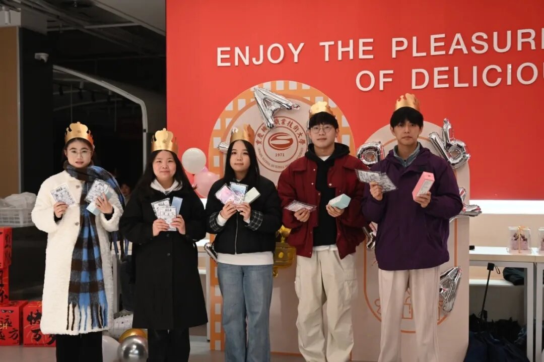 活动现场每张桌上摆满各种零食,大家围坐一堂,细细品尝香甜软糯的蛋糕,社区辅导员也融入其中,与同学们唠学习日常、聊生活趣事,闲话家常间暖意流淌,整个活动大厅都被这份温情包裹,成为寒冬里最动人的风景。