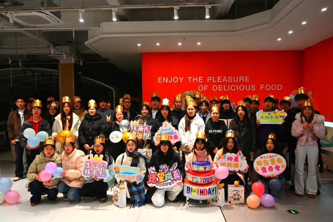 欢乐的时光总是格外短暂,温馨的相聚终有尾声。活动最后,全体师生一同移步至生日祝福背景板前,迎着镜头留下一张张灿烂笑脸,一张圆满的大合影,定格下此次生日会的所有美好与欢喜。这场冬日里的甜蜜之约,不仅让学子们感受到了生日的仪式感,更体会到学校社区大家庭的温暖,愿每一位学子都能带着这份暖意,奔赴新一岁的精彩。